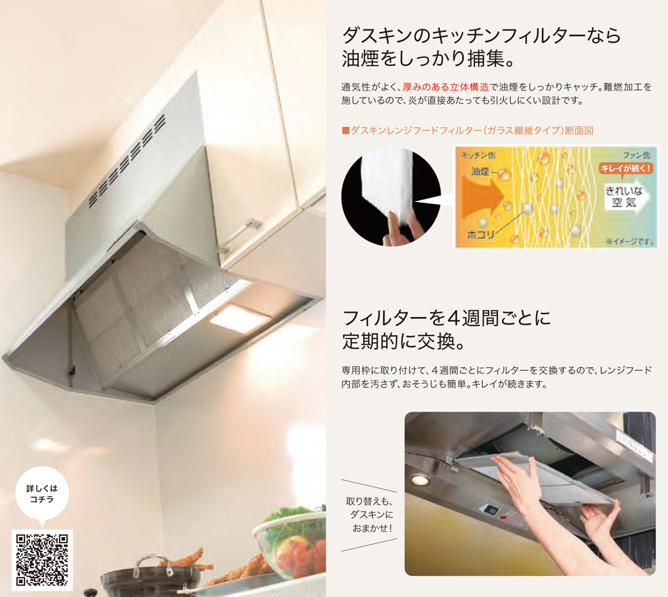 目詰まりしにくく、油煙をしっかり捕集。