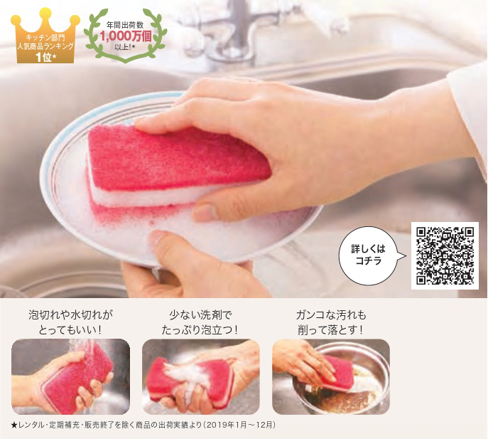●素材:ウレタンフォーム、ナイロン不織布(研磨材入)、無機系抗菌剤