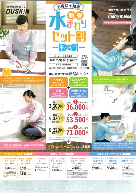 ただいまダスキン高島店・ダスキン泉田店では「新春水まわりセット割りキャンペーン」を実施しております。